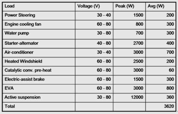 圖1. 各種汽車應用及其相關電壓和功率範圍的幾個實例
