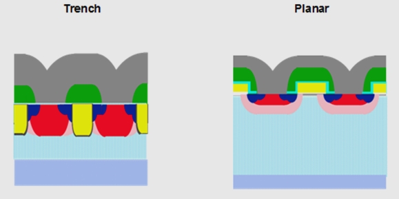 圖3. 溝道型與平麵型 MOSFET之比較