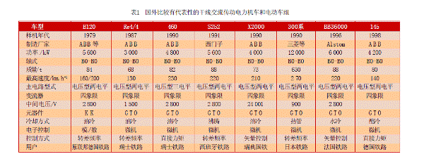 [page]20世紀70年代以來,電力電子學和微電子技術的出現和進步,又重新喚起人們對交流傳動係統的熱情。自1971年世界首台采用異步交流傳動係統的內燃機車DE2500wenshiyilai,jiaoliuchuandongxitongyiqituchudeyouyuexingshoudaolegeguotieluyunshubumendeguanzhu,huodelechangzudefazhan,bingyijibenqudailezhiliuchuandongxitong。yuzhiliuchuandongjichexiangbi,jiaoliuchuandongjuyouwukebinideyouyuexing,zheyijingzaigeguotieluyunshuxitongzhongdedaoleguangfandeyanzheng。jiaoliuchuandongsuoyongdesanxiangjiaoliuyibudiandongjibizhiliudiandongjidegonglv/體積比和功率/重(zhong)量(liang)比(bi)更(geng)大(da),無(wu)需(xu)經(jing)常(chang)維(wei)護(hu),故(gu)障(zhang)率(lv)低(di)。異(yi)步(bu)電(dian)動(dong)機(ji)的(de)恒(heng)功(gong)率(lv)區(qu)比(bi)直(zhi)流(liu)電(dian)動(dong)機(ji)大(da)許(xu)多(duo),轉(zhuan)速(su)更(geng)高(gao),起(qi)動(dong)牽(qian)引(yin)力(li)大(da),持(chi)續(xu)功(gong)率(lv)大(da),有(you)利(li)於(yu)實(shi)現(xian)重(zhong)載(zai)和(he)高(gao)速(su)牽(qian)引(yin)。交(jiao)流(liu)傳(chuan)動(dong)可(ke)以(yi)很(hen)容(rong)易(yi)地(di)實(shi)現(xian)電(dian)氣(qi)製(zhi)動(dong),大(da)大(da)減(jian)少(shao)製(zhi)動(dong)閘(zha)瓦(wa)的(de)消(xiao)耗(hao),並(bing)可(ke)以(yi)利(li)用(yong)製(zhi)動(dong)時(shi)反(fan)饋(kui)的(de)能(neng)量(liang),起(qi)到(dao)節(jie)能(neng)節(jie)油(you)的(de)作(zuo)用(yong),經(jing)濟(ji)效(xiao)益(yi)顯(xian)著(zhu)。另(ling)外(wai),交(jiao)流(liu)傳(chuan)動(dong)機(ji)車(che)的(de)一(yi)個(ge)突(tu)出(chu)的(de)優(you)點(dian)在(zai)於(yu)其(qi)優(you)良(liang)的(de)粘(zhan)著(zhe)特(te)性(xing),由(you)於(yu)異(yi)步(bu)交(jiao)流(liu)電(dian)動(dong)機(ji)變(bian)頻(pin)調(tiao)速(su)係(xi)統(tong)具(ju)有(you)很(hen)硬(ying)的(de)機(ji)械(xie)特(te)性(xing),車(che)輪(lun)更(geng)不(bu)容(rong)易(yi)打(da)滑(hua)或(huo)者(zhe)空(kong)轉(zhuan)。其(qi)次(ci),交(jiao)流(liu)傳(chuan)動(dong)電(dian)力(li)機(ji)車(che)牽(qian)引(yin)和(he)再(zai)生(sheng)工(gong)況(kuang)的(de)功(gong)率(lv)因(yin)數(shu)均(jun)接(jie)近(jin)於(yu)1,不(bu)僅(jin)降(jiang)低(di)了(le)電(dian)網(wang)損(sun)耗(hao)而(er)且(qie)在(zai)再(zai)生(sheng)製(zhi)動(dong)時(shi)可(ke)將(jiang)高(gao)質(zhi)量(liang)電(dian)能(neng)反(fan)饋(kui)給(gei)電(dian)網(wang),消(xiao)除(chu)了(le)電(dian)網(wang)對(dui)信(xin)號(hao)和(he)通(tong)信(xin)係(xi)統(tong)的(de)幹(gan)擾(rao)。再(zai)者(zhe),機(ji)車(che)采(cai)用(yong)交(jiao)流(liu)牽(qian)引(yin)電(dian)動(dong)機(ji)後(hou),簧(huang)下(xia)重(zhong)量(liang)大(da)大(da)減(jian)輕(qing),改(gai)善(shan)了(le)輪(lun)軌(gui)動(dong)力(li)學(xue)性(xing)能(neng),降(jiang)低(di)了(le)機(ji)車(che)輪(lun)緣(yuan)磨(mo)耗(hao)。隨(sui)著(zhe)磁(ci)場(chang)定(ding)向(xiang)矢(shi)量(liang)控(kong)製(zhi)和(he)直(zhi)接(jie)轉(zhuan)矩(ju)控(kong)製(zhi)等(deng)高(gao)性(xing)能(neng)異(yi)步(bu)電(dian)動(dong)機(ji)控(kong)製(zhi)策(ce)略(lve)的(de)應(ying)用(yong),交(jiao)流(liu)傳(chuan)動(dong)機(ji)車(che)的(de)調(tiao)速(su)性(xing)能(neng)已(yi)經(jing)能(neng)夠(gou)達(da)到(dao)甚(shen)至(zhi)超(chao)過(guo)直(zhi)流(liu)傳(chuan)動(dong)機(ji)車(che)。表(biao)1是國外比較有代表性的使用交流傳動的電力機車和電動車組。