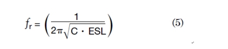 該模型給出了適用於絕大多數表麵貼裝MLCC的正確阻抗曲線。記住電容值將隨溫度和直流偏置而變化。等效串聯電(ESR)隨溫度、直流偏置和頻率變化,而等效串聯電感(ESL)卻基本保持不變。對阻抗來說,也許最重要的部分是諧振點,因為這是衰減最大的頻率。眾所周知,計算諧振頻率的公式是: