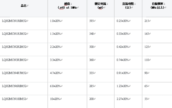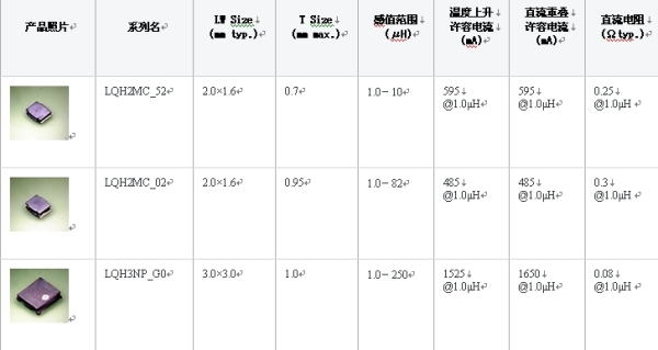 - LQH係列產品中最小最薄的是LQH2MC_52係列