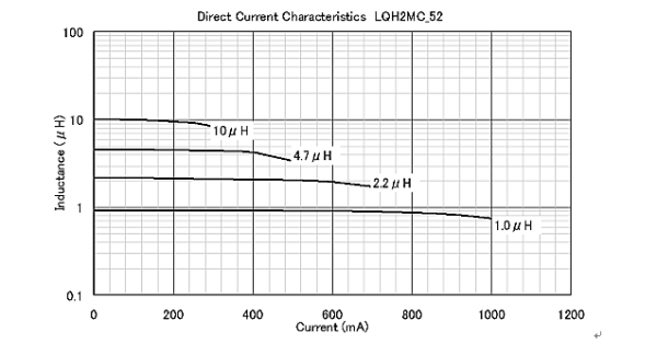 LQH2MC_52係列是以獨特的材料和成型技術為基礎的超薄型鐵氧體磁芯和高度卷線以及終端處理技術實現了最大2.0×1.6×0.70m的de小xiao型xing超chao薄bo規gui格ge功gong率lv電dian感gan,特te別bie適shi合he便bian攜xie音yin樂le播bo放fang器qi和he手shou機ji的de液ye晶jing屏ping。另ling外wai,根gen據ju上shang述shu技ji術shu和he磁ci性xing電dian路lu設she計ji技ji術shu,能neng夠gou取qu得de充chong分fen滿man足zu實shi際ji需xu求qiu的de最zui大da為wei10μH的感值(表2),同時實現了出色的直流偏置特性(圖2)。