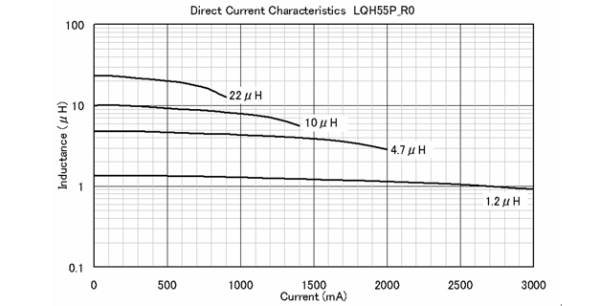 表3及圖6中表示了LQH55P_R0係列的額定電流表和直流偏置特性。