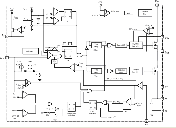 飛兆半導體的集成式“Green FPS”功率開關FSFA2100係列是專門針對不對稱半橋轉換器設計而開發的一種技術。這種技術在單個器件中整合了PWM控製器、高端驅動和SuperFET,隻需要極少數量的外部元件。圖3所示為其內部模塊示意圖。在大功率轉換器應用中,PCB版圖設計一向是棘手部分,因為在布局時,為了把噪聲幹擾降至最低,必需讓柵極驅動器和控製電路盡可能地靠近MOSFET。FSFA2100把柵極驅動器及控製電路與MOSFET集ji成cheng在zai一yi起qi,使shi這zhe些xie器qi件jian之zhi間jian的de距ju離li最zui小xiao化hua,從cong而er大da幅fu減jian小xiao了le終zhong端duan應ying用yong的de噪zao聲sheng幹gan擾rao。此ci外wai,這zhe樣yang做zuo也ye減jian少shao了le寶bao貴gui的de設she計ji時shi間jian,使shi生sheng產chan力li得de以yi提ti高gao。