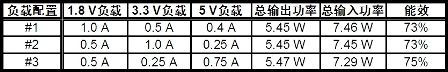 由於此款設計的主要目標是效率和電路簡單性,而且特定DTA電路應用所需的電壓和電流配置也會明顯不同,所以我們在多種不同負載條件下測試了能效,結果如表2所示。如我們可能預計的那樣,5 V輸出上負載最大的配置總能效也最高。