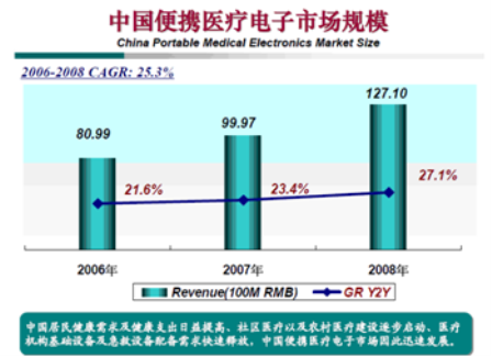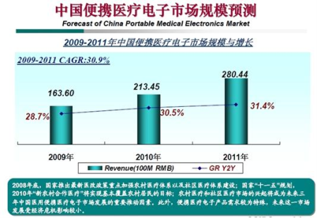 - 未來3年,中國便攜醫療電子市場年複合增長率將超過30%