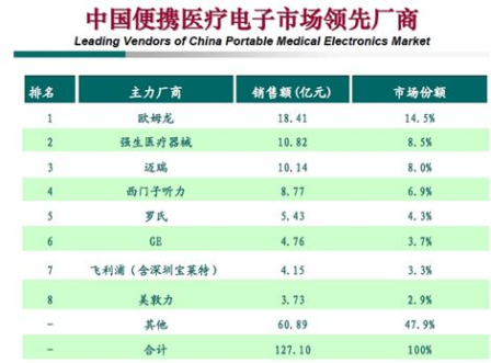 - 2008年國內便攜式醫療電子產品市場的總量達到127億的規模