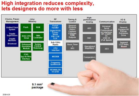 他重點紹了基於MSP430的血糖儀解決方案,完整的血糖儀隻需要一顆MSP430就可以完成。如果一天典型的測量次數大概在1-2次,整個係統功耗是2uA,用一個鈕扣電池供電,整個產品可以工作五至十年而無需更換電池!