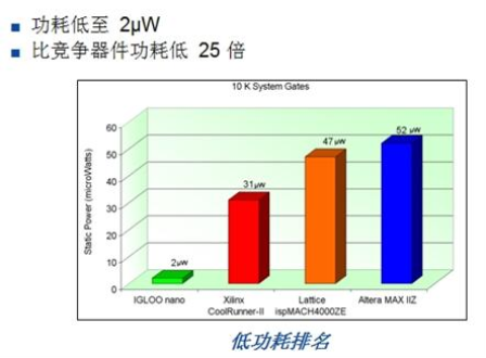 Actel技術支持培訓經理戴夢麟則介紹了低功耗Flash FPGA在便攜式醫療設備上的應用,他指出Flash工藝具備低功耗優勢、上電即行、單芯片帶來的總成本優勢、天然的安全優勢和可靠性優勢等特點,所以非常適合便攜式醫療電子產品應用。他特別將IGLOO Nano 係列 FPGA的功耗和其他廠商的FPGA產品進行了比較。