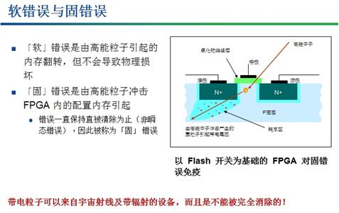 他指出對於Flash工藝器件來說,它對固錯誤有免疫性,因為Flash晶體管不會隨意翻轉,雖然有瞬態翻轉,但瞬態過了以後會恢複生產。