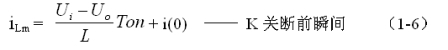 當串聯式開關電源工作於臨界連續電流狀態時,即D = 0.5時,i(0) = 0,iLm = 2 Io,因此,(1-6)式可以改寫為: