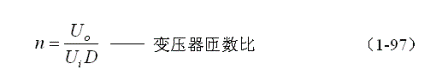 zhengjishikaiguandianyuanshuchudianyayibanshimaidongzhiliudepingjunzhi,ermaidongzhiliudepingjunzhiyukongzhikaiguandezhankongbiyouguan,yinci,zaijisuanzhengjishikaiguandianyuanbianyaqichu、次級線圈的匝數比之前,首先要確定控製開關的占空比D,把占空比D確定之後,根據(1-77)式就可以計算出正激式開關電源變壓器的初、次級線圈的匝數比: