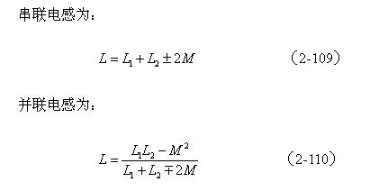 兩線圈的連接方法如圖2-40所示。其中圖2-40-a和圖2-40-b分別為正、反向串聯;圖2-40-c和圖2-40-d分別為正、反向並聯。