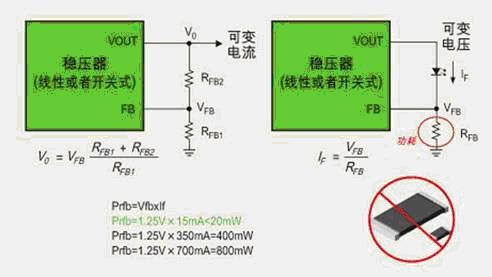 一般來說,DC/DC穩壓器對VFB的變化有一個感知的範圍,一旦LED選定,其工作電流IF的大小也就確定了,所選的電阻要保證VFB落在DC/DC穩壓器容許的範圍內。
