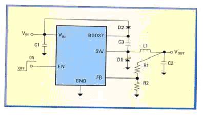 恒壓供電的基本電路(圖1左)采用反饋電阻RFB1和RFB2,當負載電流發生變化時,VFB也隨之變化,DC/DC穩壓器通過感知VFB的變化,使輸出電壓維持在一個固定的電平: