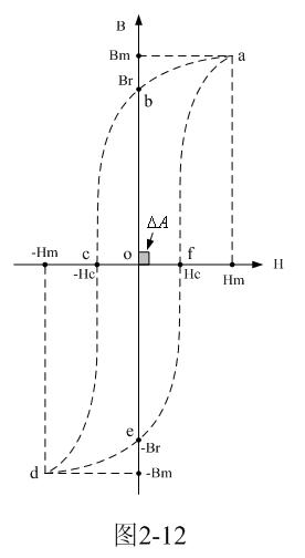 由(2-24)式很容易看出,虛線a-b-c-d-e-f-a圈起來的麵積所對應的就是磁滯損耗的能量;即:磁滯損耗能量的大小與磁滯回線的麵積成正比。
