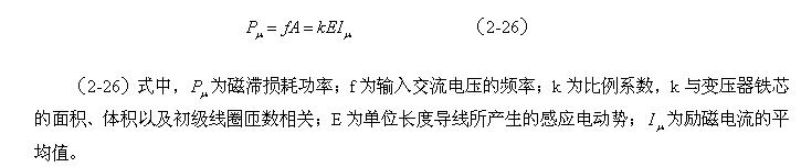 從(2-23)、(2-24)、(2-25)、(2-26)式(shi)可(ke)以(yi)看(kan)出(chu),開(kai)關(guan)變(bian)壓(ya)器(qi)的(de)磁(ci)滯(zhi)損(sun)耗(hao)主(zhu)要(yao)是(shi)由(you)勵(li)磁(ci)電(dian)流(liu)產(chan)生(sheng)的(de),但(dan)並(bing)不(bu)是(shi)所(suo)有(you)流(liu)過(guo)變(bian)壓(ya)器(qi)初(chu)級(ji)線(xian)圈(quan)的(de)電(dian)流(liu)都(dou)是(shi)屬(shu)於(yu)勵(li)磁(ci)電(dian)流(liu),或(huo)所(suo)有(you)的(de)勵(li)磁(ci)電(dian)流(liu)都(dou)會(hui)轉(zhuan)化(hua)為(wei)磁(ci)滯(zhi)損(sun)耗(hao);這一點後麵還會進一步說明。