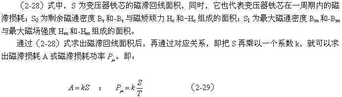 上式中A為一個周期內變壓器鐵芯的磁滯損耗,S為變壓器鐵芯的磁滯回線麵積,k為比例係數,T為輸入交流電壓的周期。