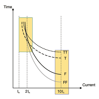 圖1圖中的下降曲線是中等延時型(T)和快速響應型(F)熔絲的普通曲線