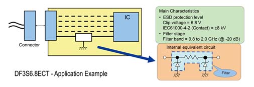 DF3S6.8ECT:Toshiba推出具有ESD保護和EMI濾波的二極管