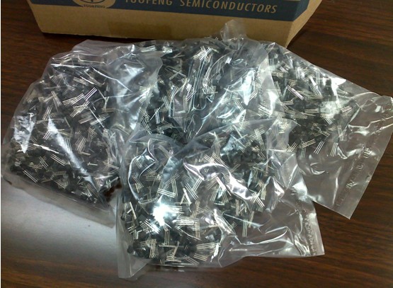 截至目前,產品有直插,貼片三極管,電源配套IC,MOS場效應管等,封裝形式有TO-92,TO-126,TO-220,SOT-23,SOT-89等。廣泛應用於充電器,電源、MP3、DVD/VCD解碼板、玩具、電話、家用電器等,並可根據用戶需求和產品規範,量身定製。我們的加工廠擁有先進的生產設備和技術,並通過了ISO9000、SGS認證,使產品擁有高質量和可靠性,達到國際上同類產品的先進水平。