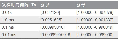 這樣做的目的是為了將內部采樣偏移 (inter sample deviation) 控製在可以接受的最小範圍內。為說明這種情況,表 1 列出了采樣率變化時對控製器係數的影響。在此例中,我們將一個簡單的單極點傳輸函數進行了離散處理。(1) 為傳輸函數的關係式。