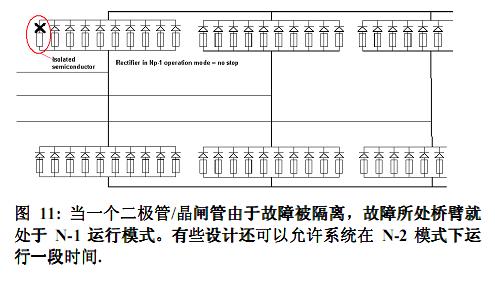 整(zheng)流(liu)器(qi)中(zhong)的(de)半(ban)導(dao)體(ti)和(he)快(kuai)熔(rong)的(de)配(pei)合(he)需(xu)要(yao)仔(zai)細(xi)考(kao)慮(lv)。一(yi)個(ge)考(kao)慮(lv)周(zhou)全(quan)的(de)熔(rong)斷(duan)器(qi)保(bao)護(hu)方(fang)案(an)基(ji)本(ben)不(bu)存(cun)在(zai)半(ban)導(dao)體(ti)爆(bao)炸(zha)的(de)可(ke)能(neng)。與(yu)之(zhi)相(xiang)反(fan),不(bu)當(dang)的(de)係(xi)統(tong)設(she)計(ji)將(jiang)會(hui)導(dao)致(zhi)燃(ran)弧(hu)和(he)起(qi)火(huo)、損壞整個整流器單元、以及操作人員的人身傷害。按照N-1模式設計係統可以保護用戶免受生產線部分或全部停頓帶來的損失。因此,在大功率整流應用中,都是基於N-1模式的連續滿載運行。在某些應用中,客戶甚至要求按N-2-或更多來進行設計,這些都要加以考慮。如果整流器在N-x模式下運行了過長的時間,而整流器本不是按照N-x模式來設計的,那麼結果就是故障熔斷器所在橋臂的所有其他熔斷器也受到了傷害。