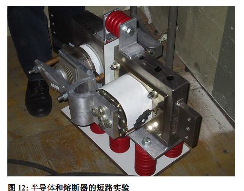 快熔的爆破I2t與短路係統電壓有關,因此在測試中,可以通過快熔來控製通過半導體的能量。這種測試的目的有兩個:其一、找到半導體的爆破I2t,其二、驗證在大故障電流下(最高300kA),快速熔斷器防止半導體爆炸的能力。