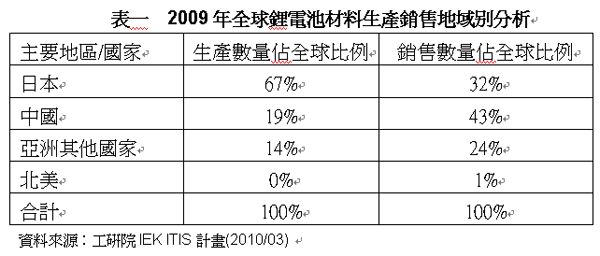 在生產與銷售地區上,在2009nianrengranchengxianjizhongyuyazhoudetaishi,qizhongribenrengweizuizhuyaodezhengjicailiaoshengchanyuxiaoshoudaguo,suiranzairibenguoneiyinshengchanchengbengaozhangzhigu,lidianchidezhizaochukouzhunianxiajiangzhong,danzhijinquanqiurengyoujin67%的鋰電池正極材料在日本生產,中國與其他亞洲地區僅占19%與14%。至於在銷售地區分布上,由於下遊的電池大廠仍以日商為多,因此日本仍為銷售地區比例最高的國家,其他依序為中國、其他亞洲地區、北美等地。