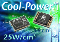 Cool-Power係列在專利零電壓開關(ZVS)拓撲技術基礎上,使用領先的控製芯片集成技術、先進的平麵磁器件技術和高性能功率半導體技術,令產品的開關頻率超過1MHz, 效率高達87% 。動態負載的快速瞬態響應降低了對輸出大電容的需求,同時產品固有的低噪聲和高頻特性使得電磁幹擾(EMI)性能顯著改善。