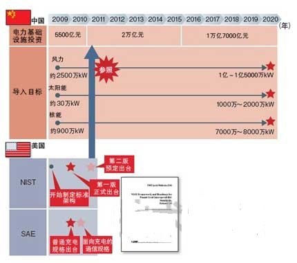 美國加緊推進標準化是因為瞄準了中國將在2011年以後向電力基礎設施投入的巨大投資。圖中中國的數據由海外電力調查會提供。