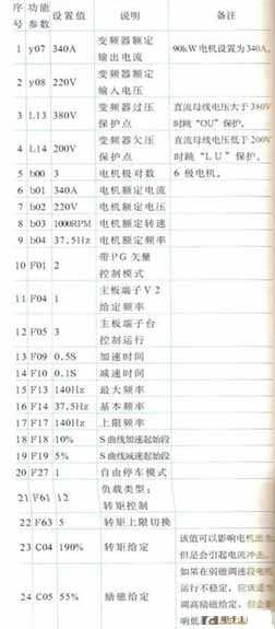 待(dai)機(ji)狀(zhuang)態(tai),將(jiang)電(dian)機(ji)的(de)輸(shu)入(ru)線(xian)接(jie)至(zhi)變(bian)頻(pin)器(qi)的(de)輸(shu)出(chu)端(duan),無(wu)誤(wu)後(hou)上(shang)電(dian)頻(pin)率(lv)一(yi)點(dian)點(dian)升(sheng)至(zhi)滿(man)頻(pin),用(yong)萬(wan)用(yong)表(biao)測(ce)試(shi)三(san)相(xiang)輸(shu)出(chu)電(dian)壓(ya)是(shi)否(fou)平(ping)衡(heng),用(yong)嵌(qian)流(liu)表(biao)測(ce)電(dian)機(ji)的(de)三(san)相(xiang)輸(shu)出(chu)電(dian)流(liu)是(shi)否(fou)平(ping)衡(heng),觀(guan)察(cha)鍵(jian)盤(pan)各(ge)監(jian)視(shi):輸出頻率、輸出電流、輸出電流百分比、電機轉速、IGBT溫度等是否有異常;調整功能參數L01,將輸出電流百分比調準,即變頻器輸出的電流與鍵盤監視的電流相一致;調整電源板上的參數位R35、R37,使變頻器達到2.6倍的額定電流時跳過流保護斷電,將速度傳感器的接線與變頻器的PG卡端子一一對應接好。