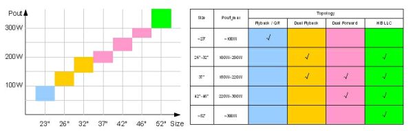 圖4:傳統式LCDTV主電源功率範圍及架構選擇。