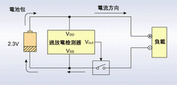 隨sui著zhe使shi用yong時shi間jian的de增zeng加jia,已yi充chong過guo電dian的de鋰li離li子zi電dian池chi電dian壓ya會hui逐zhu漸jian降jiang低di,最zui後hou低di到dao規gui格ge標biao準zhun值zhi以yi下xia,此ci時shi就jiu需xu要yao再zai度du充chong電dian。若ruo未wei充chong電dian而er繼ji續xu使shi用yong,可ke能neng造zao成cheng由you於yu過guo度du放fang電dian而er使shi電dian池chi不bu能neng繼ji續xu使shi用yong。為wei防fang止zhi過guo度du放fang電dian,保bao護huIC必須檢測電池電壓,一旦達到過度放電檢測電壓以下,就得使放電一方的功率MOSFET切斷而截止放電。但此時電池本身仍有自然放電及保護IC的消耗電流存在,因此需要使保護IC消耗的電流降到最低程度。