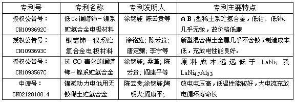 在zai塗tu銘ming旌jing院yuan士shi帶dai領ling下xia,之zhi前qian四si川chuan大da學xue材cai料liao學xue院yuan的de博bo士shi生sheng導dao師shi陳chen雲yun貴gui教jiao授shou主zhu持chi完wan成cheng了le無wu釹nv鎳nie氫qing動dong力li電dian池chi的de開kai發fa,其qi綜zong合he性xing能neng在zai國guo內nei外wai主zhu要yao品pin牌pai電dian池chi的de對dui抗kang試shi驗yan中zhong處chu於yu領ling先xian,獲huo得de了le四si項xiang國guo家jia發fa明ming專zhuan利li授shou權quan和he2003nianzhongguoxitushidakejixinwenzhiyiderongyu。tumingjingyuanshihechenyunguijiaoshouzhengzaijijituiguangcixingnengyouliangdekuanwenqunieqingdianchi,zhankaifeijiyongdiwendadianliufangdianxingnengyouliangdenieqingqidongdianyuanhediandongqicheyongkuanwenqu、長壽命及低成本鎳氫電池的開發。