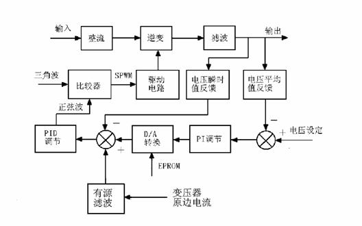 由於在輸出變壓器中,勵磁電流一般僅占原邊電流的2%,yinciyuanbiandianliuzhiliufenliangdejiancebixushouxianlvchulicidianliuzhongdejibojigaopinchengfen,ranhouzaijiangshengxiadezhiliufenliangfangdahouyongyukongzhi。licidianliuzhongzhiliufenliangdetiqukexianyouhuoerdianliuchuanganqijiancebianyaqideyuanbiandianliu,zaijingyouyuanlvbo,zuihousongdaoPID調節器中,其雙閉環控製原理框圖為如圖3所示。