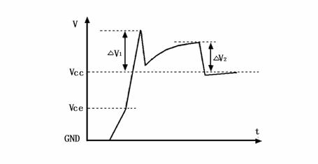 在圖5中,Vce起始電壓的毛刺ΔV1是由緩衝電路的寄生電感LS和緩衝二極管的正向恢複引起的。其主要部分取決於寄生電感LS: