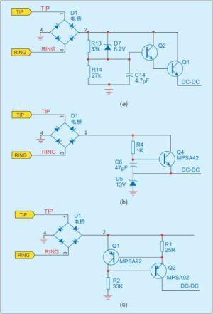 可是,對於現在很多新型多功能電話機、公用ICkadianhuajihuoliyonggongyongjiaohuanwangjinxingyuanchengtongxindexiaoxingshebeilaishuo,jihaoandedianyuandianliuyuanyuanmanzubulexuqiu。ruguocaiyongwaibugongdianhuodianchigongdian,budanhuizengjiachengben,erqiehaihuigeiyonghudeshiyongdailaibubian。zuilixiangdefanganshicongxianlukuidianhuoquxitongdianyuan。danshigenjuGB/T15297-2002標準,話機設備在掛機狀態下能獲取的電流隻有500uA左右,在摘機狀態下能獲取的電流一般在18mA至80mA之間,另外線路阻抗的變化範圍也很大,在惡劣狀況下會達到1千多歐姆,這時如果采用傳統電源電路肯定無法獲得足夠的功率。