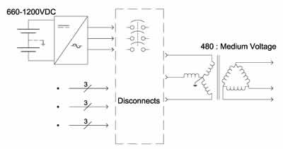 同tong樣yang的de原yuan則ze也ye適shi用yong於yu公gong用yong規gui模mo的de安an裝zhuang項xiang目mu。然ran而er,大da多duo數shu公gong用yong規gui模mo的de安an裝zhuang項xiang目mu涉she及ji大da型xing接jie地di光guang伏fu數shu組zu,並bing配pei備bei了le許xu多duo逆ni變bian器qi,可ke迅xun速su升sheng壓ya至zhi中zhong壓ya(4160至13.8千伏)。此外,傳統逆變器需要一個單獨的隔離變壓器與各個逆變器進行配對,而這就占到不必要損耗中的多達兩個效率點。