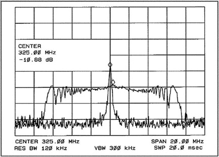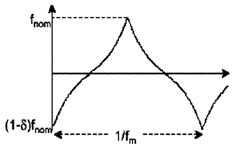 ---利用時鍾發生器中PLL的特性,以圖2所示的Lexmark曲線,以係統時鍾為中心作小幅度的調變,將可使EMI的能量平均散布在一小段的頻譜範圍中,以降低單一頻率EMI的峰值,如圖3所示。