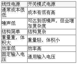 表1線性與開關電源對比