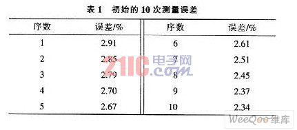 以200W的小型離網光伏係統為例,額定電壓24V,最大電流6.18A,蓄電池200Ah。設計正常放電時間為2~3d,0~6.18A的電流按比例轉換為0~5V的電壓,由2隻電阻構成的衰減器,輸出電壓放大比例由電阻R1和R2的比值決定,設定U/U轉換比例為5/24,則R7=10kΩ,R6+Rp2=48kΩ。根據電量計算公式Q=UIT,實驗時間為中午12時至下午2時,從顯示電量開始,每隔3min記錄一次實際功率和監控係統所顯示的數據,各次誤差均小於3%,表l給出初始的10次測量誤差情況,隨電量逐漸增大,誤差變化範圍逐漸縮小。