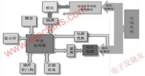 通過RS-485總線使電池管理係統的測控模塊與手動檢測模塊的CPU相連,實現對測控模塊的參數設置,同時還可以將測控模塊測量到的數據讀取到CPU中。