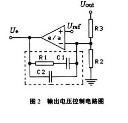 輸出電壓Uout在作為控製取樣信號時,通常經過圖2所示的電路進行處理,得到電壓信號Ue,Ue再經處理或直接送入PWM控製器。圖2中電壓運算放大器(e/a)的作用有三: