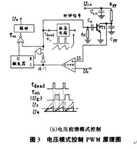 改善加快電壓模式控製瞬態響應速度的方法有二種:yishizengjiadianyawuchafangdaqidedaikuan,baozhengjuyouyidingdegaopinzengyi。danshizheyangrongyishougaopinkaiguanzaoshengganraoyingxiang,xuyaozaizhudianlujifankuikongzhidianlushangcaiqucuoshijinxingyizhihuotongxiangweishuaijianpinghuachuli;另一方法是采用電壓前饋模式控製PWM技術,原理如圖3(b)所示。用輸入電壓對電阻電容(RFF、CFF)充電產生的具有可變化上斜坡的三角波取代傳統電壓模式控製PWM中zhong振zhen蕩dang器qi產chan生sheng的de固gu定ding三san角jiao波bo。此ci時shi輸shu入ru電dian壓ya變bian化hua能neng立li刻ke在zai脈mai衝chong寬kuan度du的de變bian化hua上shang反fan映ying出chu來lai,因yin此ci該gai方fang法fa對dui輸shu入ru電dian壓ya的de變bian化hua引yin起qi的de瞬shun態tai響xiang應ying速su度du明ming顯xian提ti高gao。對dui輸shu入ru電dian壓ya的de前qian饋kui控kong製zhi是shi開kai環huan控kong製zhi,而er對dui輸shu出chu電dian壓ya的de控kong製zhi是shi閉bi環huan控kong製zhi,目mu的de是shi增zeng加jia對dui輸shu入ru電dian壓ya變bian化hua的de動dong態tai響xiang應ying速su度du。這zhe是shi一yi個ge有you開kai環huan和he閉bi環huan構gou成cheng的de雙shuang環huan控kong製zhi係xi統tong。