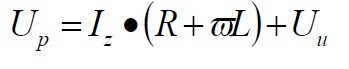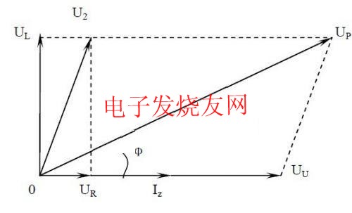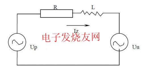 光伏發電並網運行時的電路原理如圖2所示。Up為逆變器輸出電壓,Uu為電網電壓,R為線路電阻,L為串聯電抗器,Iz則為回饋電網的電流。為保證回饋功率因數為1,回饋電流的相位必須與電網電壓的相位一致。以電網電壓Uu為參考,則Iz與Uu同相位,其矢量圖如圖3所示。內阻R兩端的電壓UR與電網電壓相位一致,而電抗器兩端電壓UL的相位則落後於UR90º.由此可以求得UP的相位和幅值: