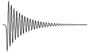 當被磁化的鐵粉通過衰減的正弦波磁場時,能夠達到有效的退磁效果。退磁效果與正弦波的頻率有關,當頻率大於800Hz時,退磁效果明顯變好。退磁效果還與磁場強度有關,通常磁場強度大於矯頑磁力的5倍即可。為了達到上述性能指標,目前普遍采用的電路形式如圖1所示,工作原理如下:當可控矽SCR2導通時,電感L1、電容C1構成一個並聯諧振回路,如果初始狀態電容C1兩端有電壓,則震蕩電路會產生衰減的正弦波震蕩,波形如圖2所示。這樣就在線圈內形成了與之同樣的磁場。該正弦波應該從最高的幅度逐漸衰減到0,才能保證更好的脫磁效果。