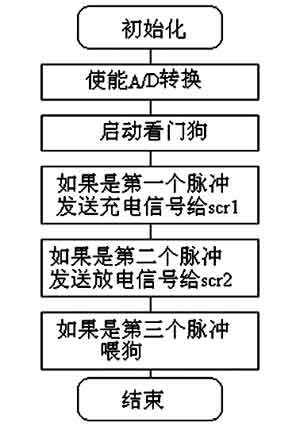 圖5是主程序流程圖。由於電路中的可控矽觸發時間要求嚴格,所以,程序中分別使用了定時器T0作為SCR1充電的觸發定時信號,定時器T1作為SCR2放電時間的定時信號。
