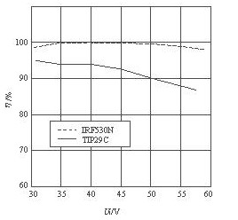 該電源模塊的電源效率與輸入電壓的關係曲線如圖6所示。