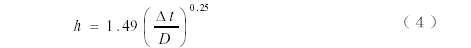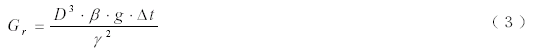 代入數據得Gr=1.1673╳10-7,而普朗特數Pr=0.7085,故Pr× Gr=8.2703╳105,在1╳104~1╳109 之間,判斷流態為層流。相應的對流換熱係數計算公式為